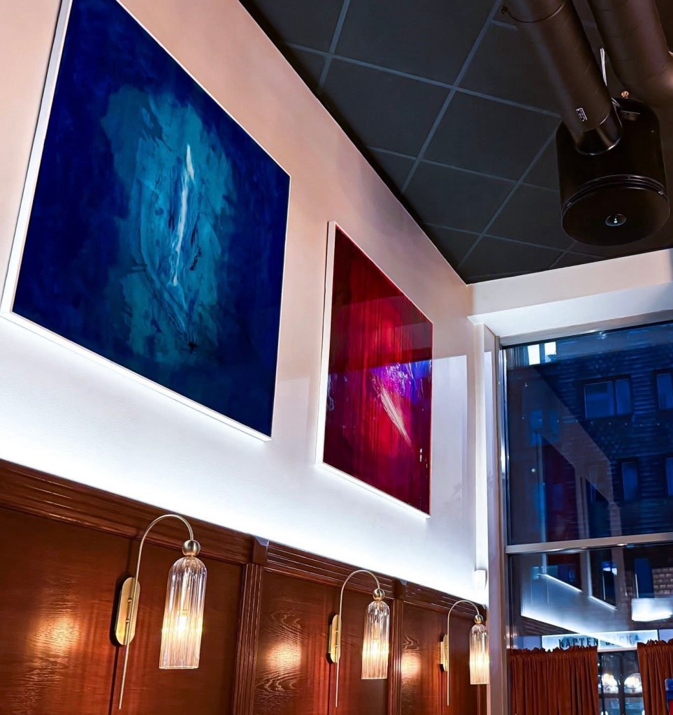 Bistro Tartine in Stockholm now showcases some of Eivindsdotter’s epoxy art. As a solo artist, her paintings grace the restaurant walls, offering a beautiful French setting to admire her epic creations.